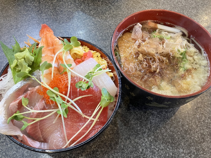 まず目を引くのは、ランチのコスパです。ちらし寿司とミニうどん(そば)のセットが税込550円クラス、「Aランチ」はミニそば付きで、どれも1,000円以内を中心にそろっています。